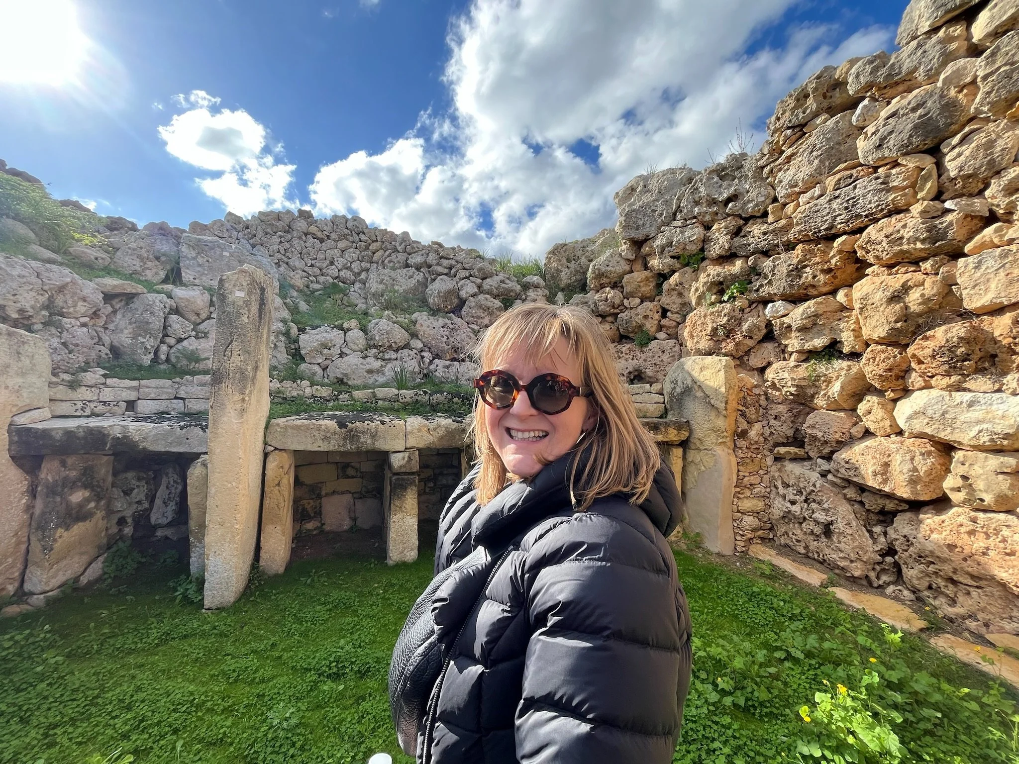 I wanted to share a short message today to reconnect after the holidays and to share one drop of inspiration I received recently. The inspiration has caused me to have an intention to "reconnect gently" with home and work life since returning a few days ago from a fascinating and moving (really a "dream come true") trip to Malta followed by a short stint in London UK. (Image above is me at one of the many megalithic temples in Malta on the Island of Gozo, called Ggantija. I'll share more about the trip soon.)